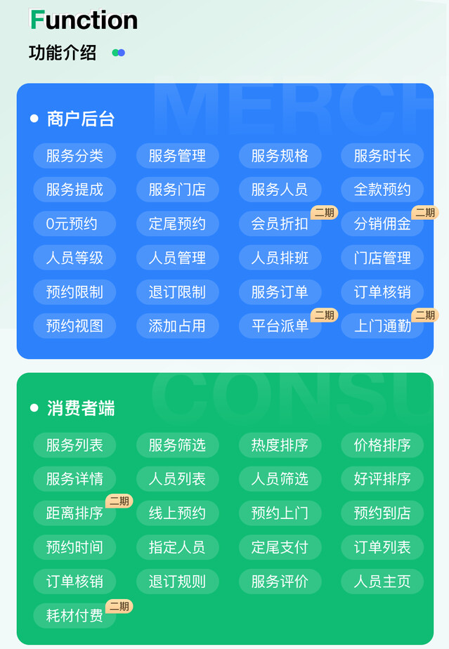 ——让预约功能更加垂直化,更深度,可以覆盖医疗、教培、门诊、家政、美业、摄影、球馆、足疗、景区、律师……等服务行业。
