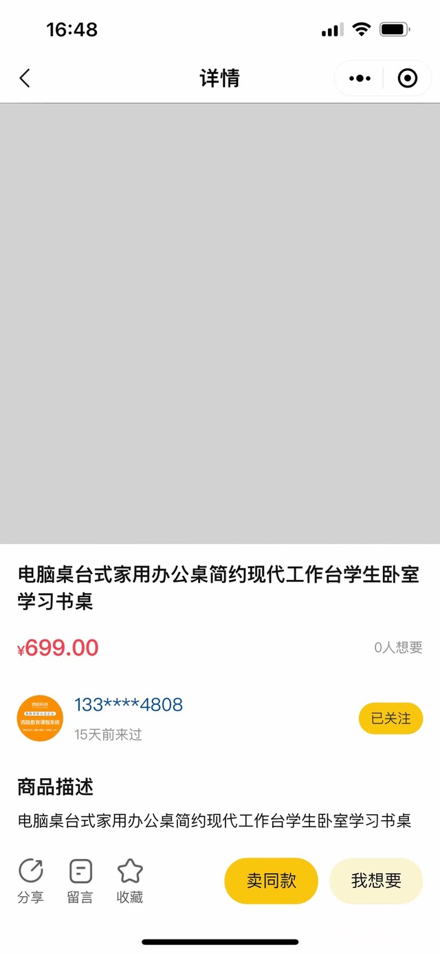 两级分类,支持搜索,查看商品介绍,收藏、分享、购买