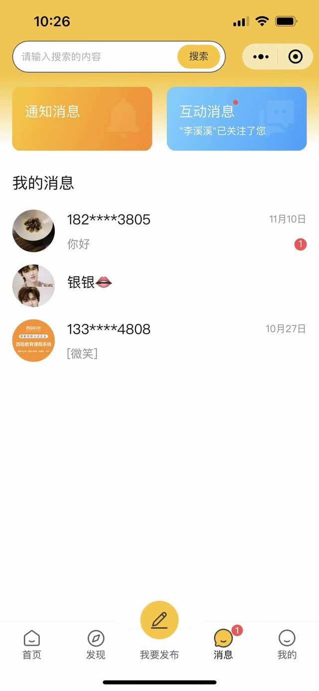 包含系统消息、互动消息