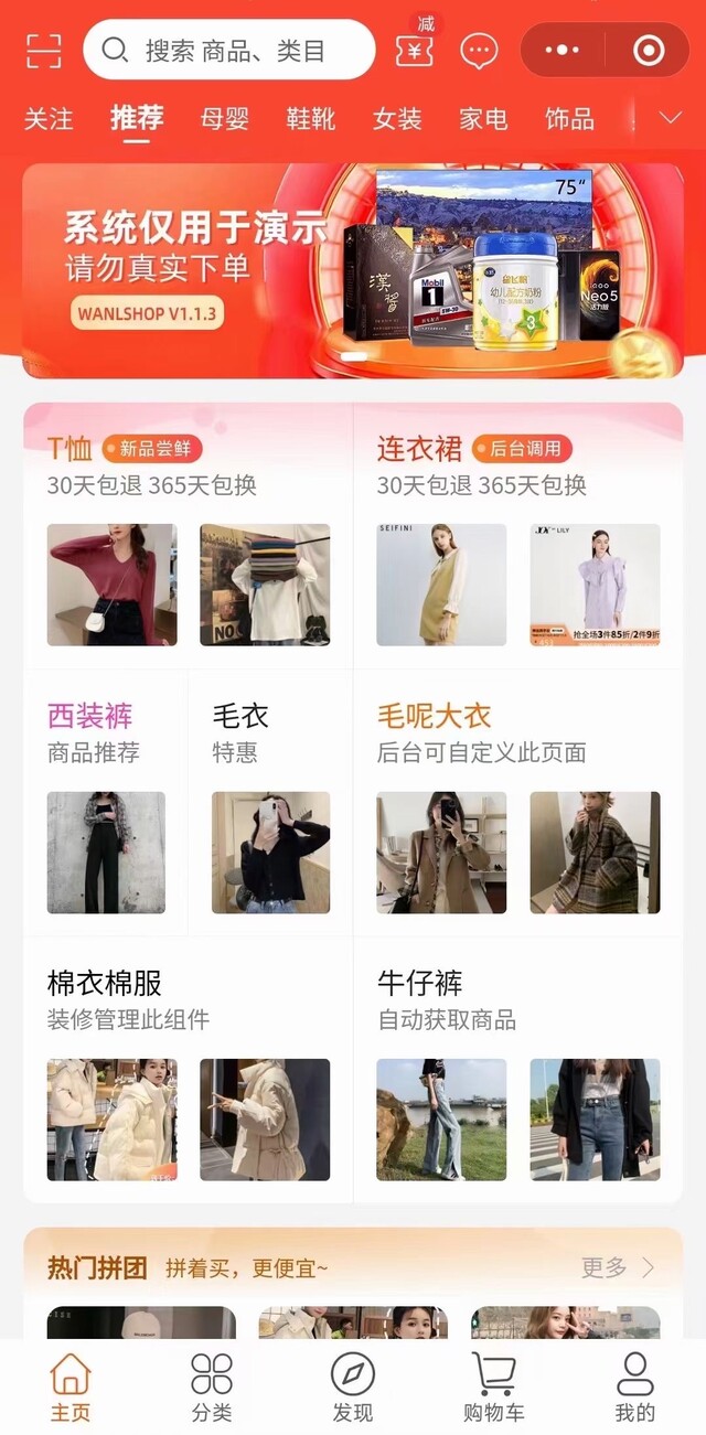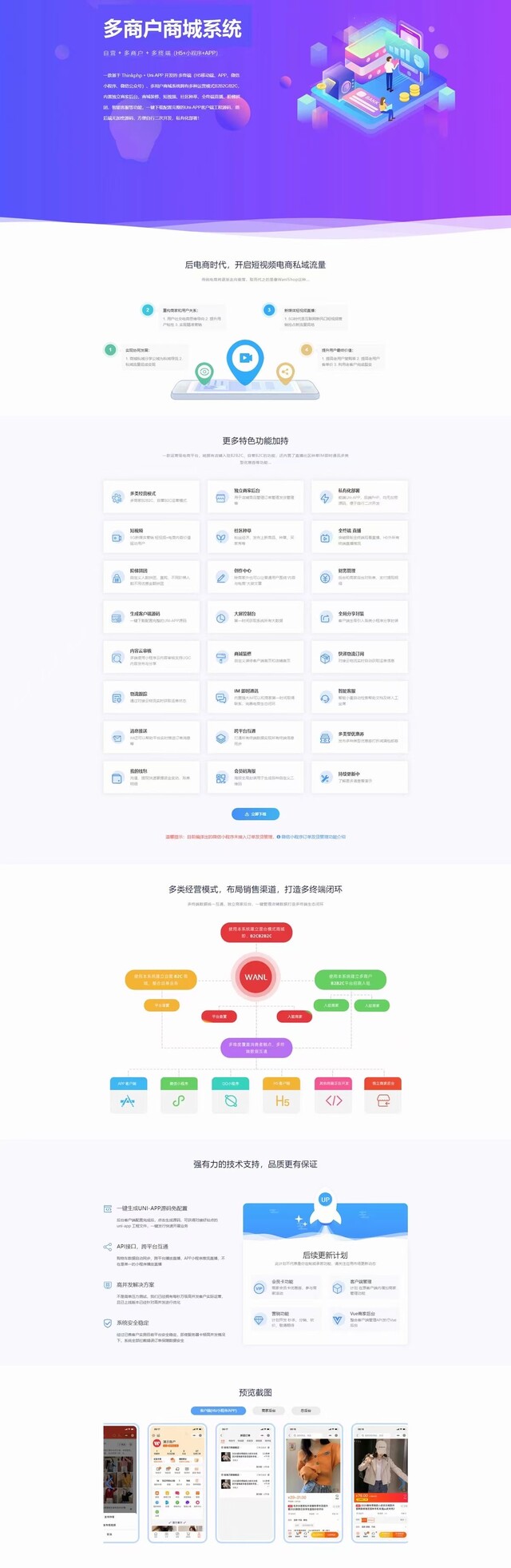 自 营+多 商 户+多 终 端(H5+小程序+APP)