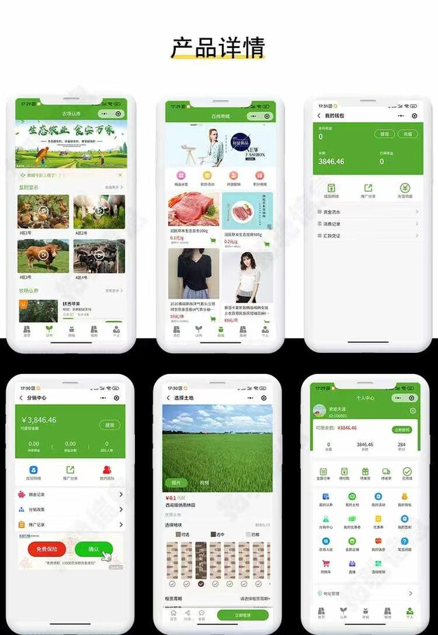 智慧农场小程序是一款农场租地种植、畜牧认养、智慧农场商城、拼购组团商城、签到积分商城、农场监控直播对接一体的农业小程序,目前解决了城市人体验农村种植、养殖的生活。足不出户就可以租地种植自己的蔬菜了,养殖鸡鸭牛羊,通过智慧农场发监控视屏,实时查看自己种植的蔬菜,让健康24小时看得见。