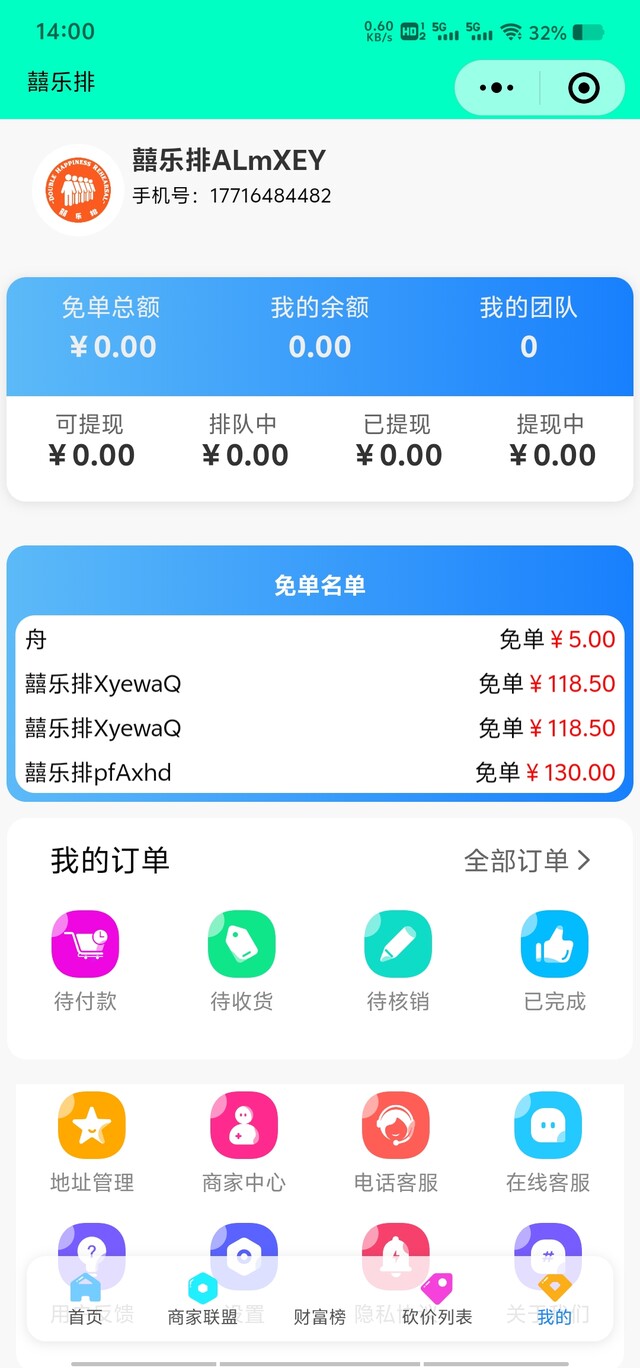 6、扫码付款亦可参与排队免单,适用无固定价格店铺