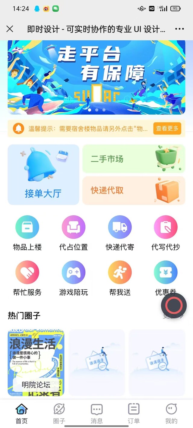二手交易市场 快递代取 游戏陪玩 论坛发布等等