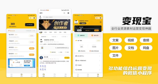 变现宝多领域素材资源知识变现营销裂变系统