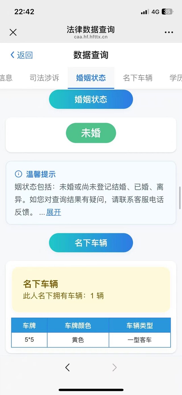 ⚠ 学历/薪资/婚姻/资产/征信/涉诉/被执行记录...