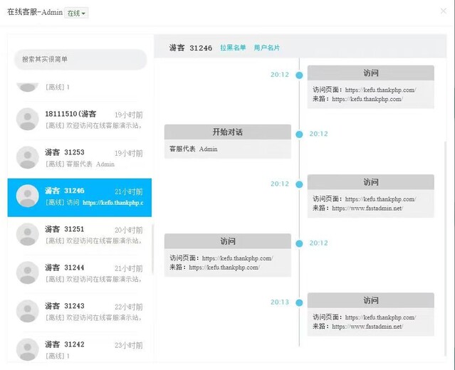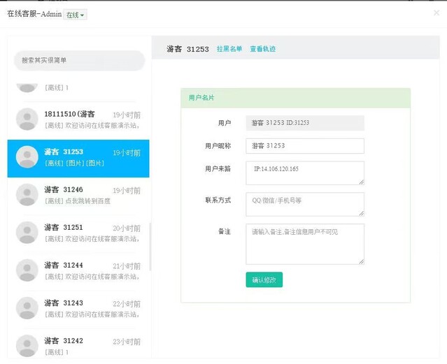 离线留言板:支持客服离线留言板功能,离线也能接收用户反馈