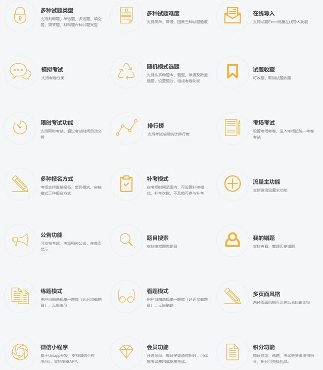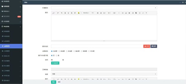 支持判断题、单选题、多选题、填空题、简答题、材料题六种试题类型
