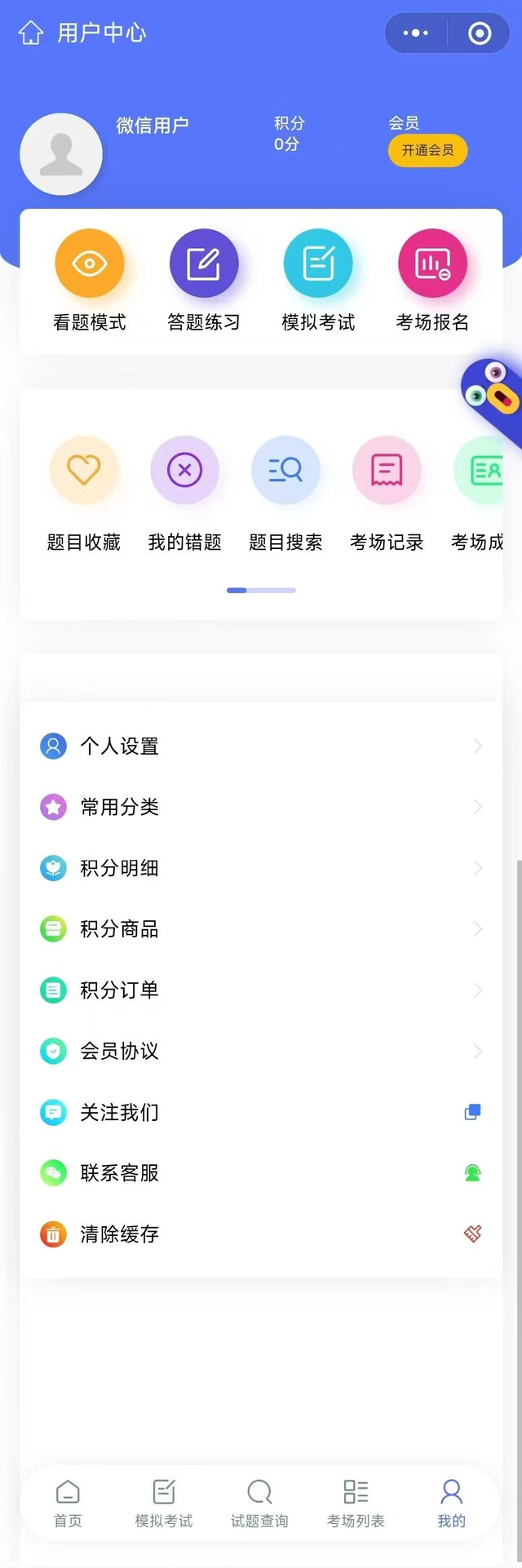 开通会员,每日多渠道得积分,可优惠考试费用或免费考试。