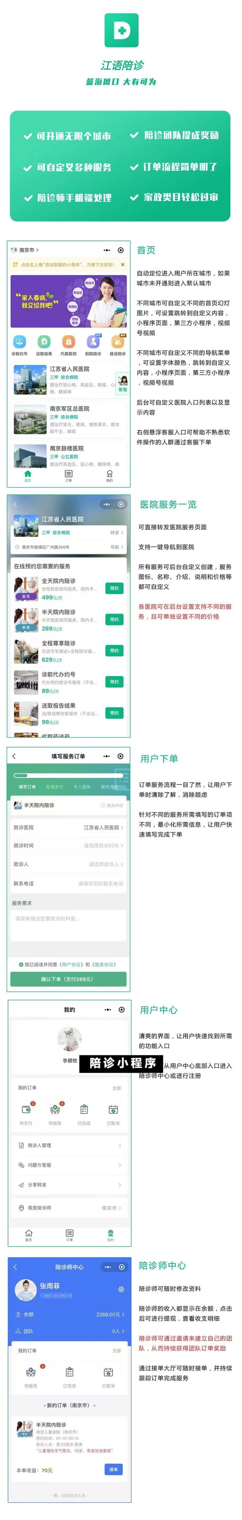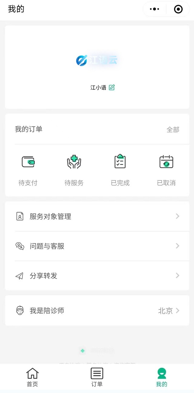 江语陪诊小程序前后端开源代码,基于Thinkphp + 原生微信小程序开发的陪诊陪护小程序,支持多运营区,陪护师、推广者等完整闭环功能,快速搭建陪护业务平台。