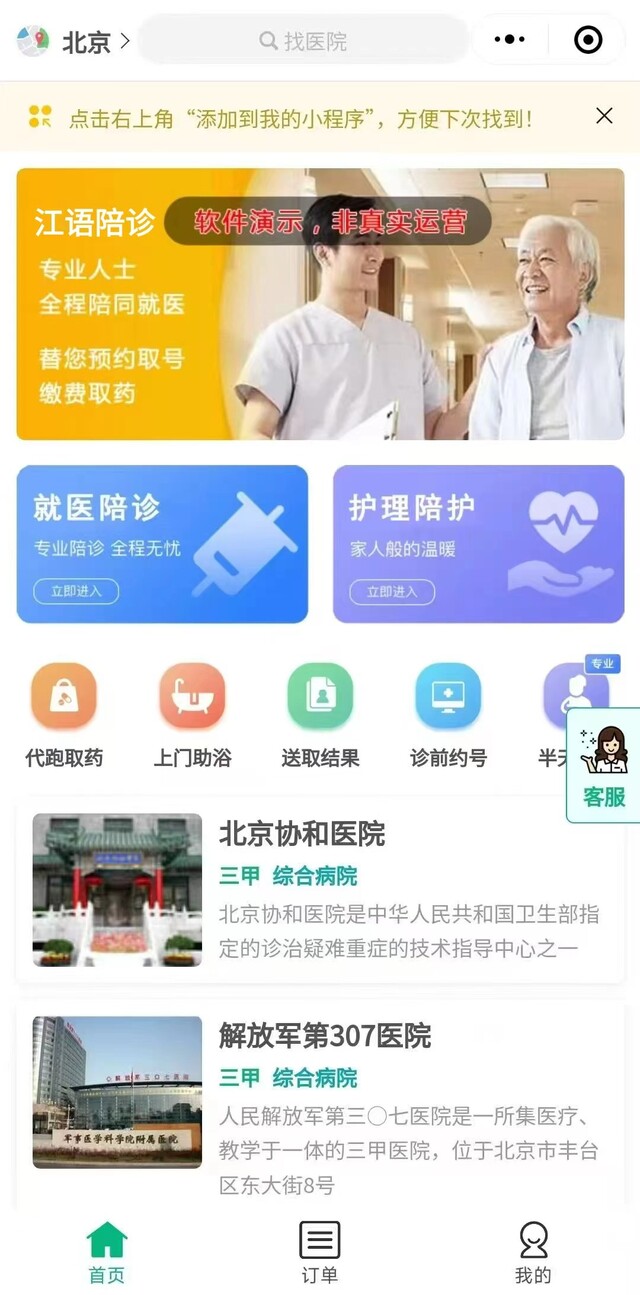 2.邀请或培训城市中的陪诊师入驻,统一获单,抽取提成。