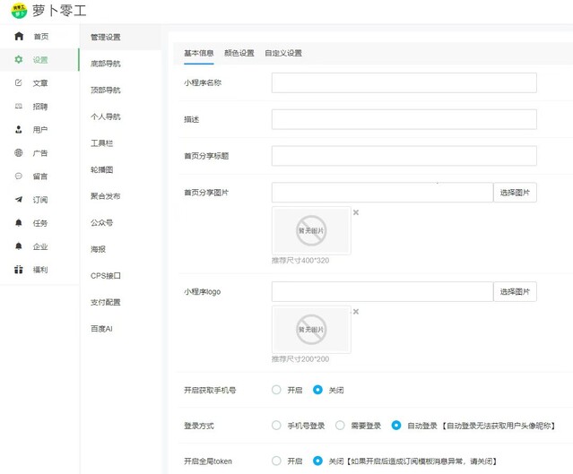 后台支持多风格主题配置,可自定义界面配色方案,适配品牌视觉需求;