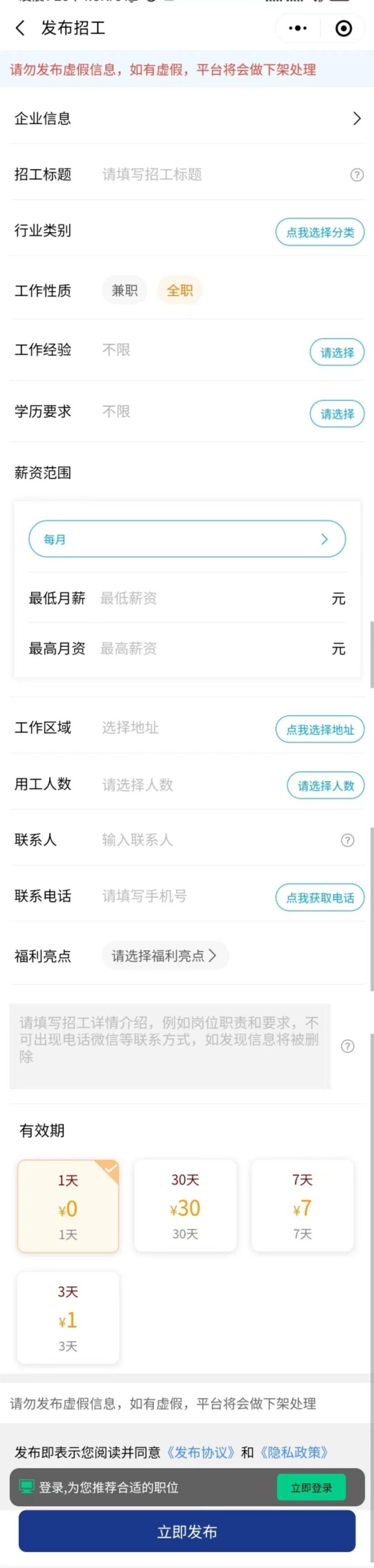 VIP 会员专享权益:免费发布信息、置顶刷新内容,提升招聘信息曝光率;