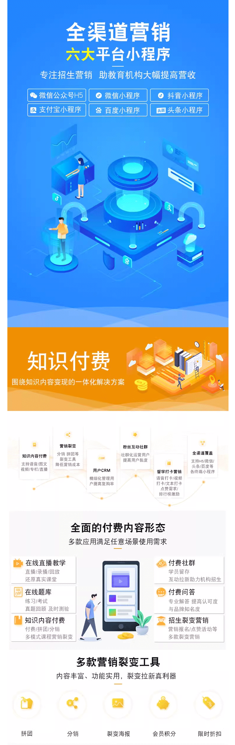 公众号H5微信小程序知识付费系统平台搭建商城在线教育培训网课程