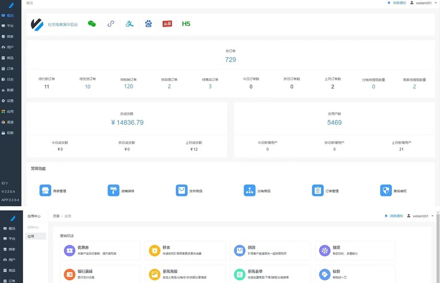 通用电商小程序商城开发定制作三级分销软件微信h5商城系统链动2加1源代码